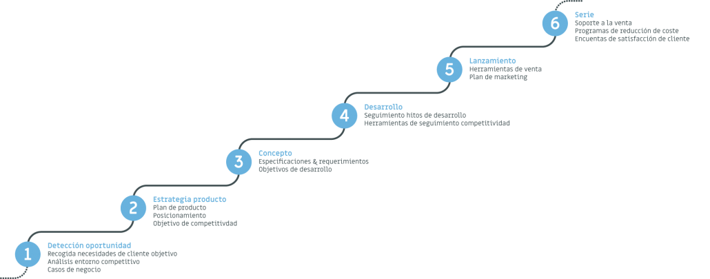 Desde la detección de la oportunidad hasta la entrada en serie del producto, son muchos los pasos que hay que dar para asegurar que el producto/servicio es competitivo y todas estas actividades son las que se agrupan en el rol de Product Management. WeMake ha desarrollado y desarrolla proyectos en esta área como, por ejemplo: