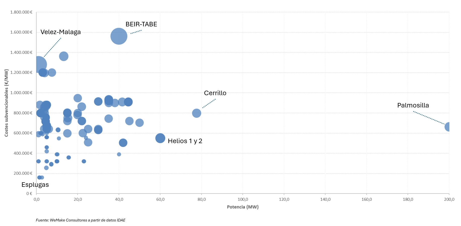 • BEIR-TABE project: this is one of the most striking projects, as it claims 40 MW of power and 8 hours of storage in a hybrid configuration. With that duration, it could be a technology other than lithium flow batteries, but with that size it is unlikely. If it were lithium, it would be one of the longest-lasting batteries in Europe. In addition, it claims 6 points in European manufacturing and has the highest cost per MW (another clue that could point to alternative technology). I have not been able to find details of this project, but it will be interesting to follow up on it to solve the mysteries it raises.