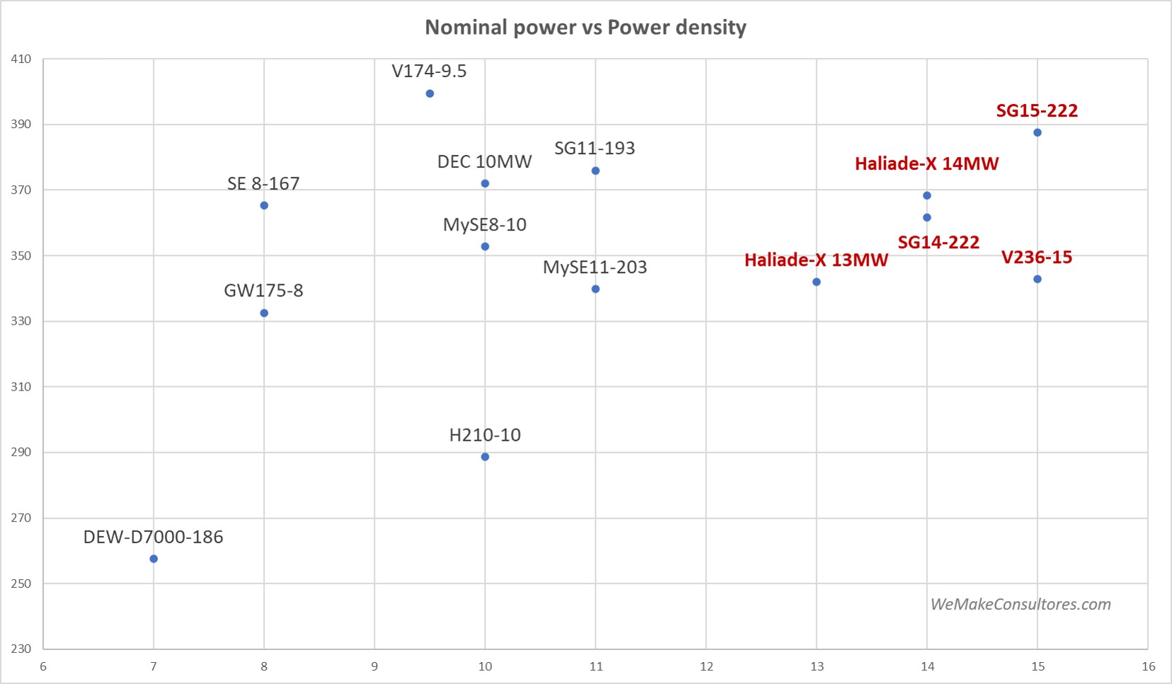The declared low weight of the nacelle is very relevant. At only 500t, it comes to 35.7 t/MW for the 14MW version and an incredible 33.3 t/MW for the uprated 15MW version.