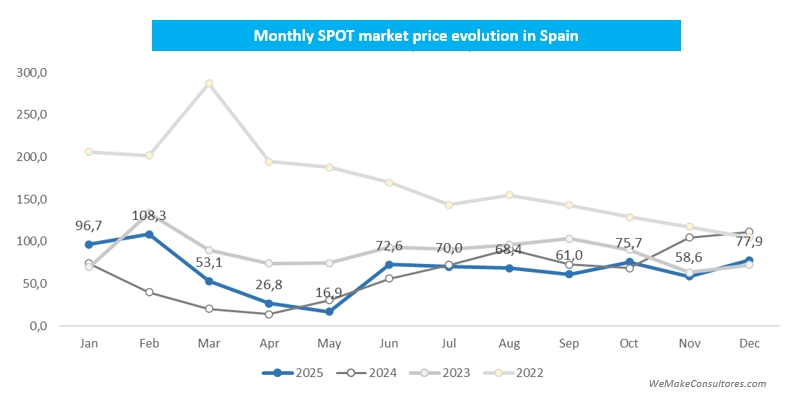 The trend that began last year is confirmed, with demand growing by 2.7% in 2025. If we added the estimate for self-consumption, we would already be close to the 2018 peak. Nevertheless, electrification remains a pending issue and we need to increase demand much more, as we mentioned in a previous post on this blog.